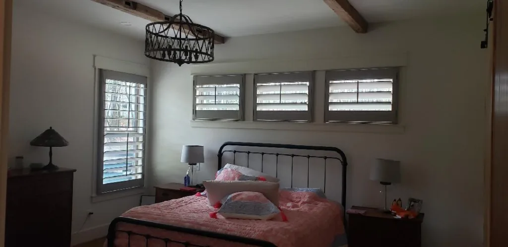 Plantation Shutters with Split Front Tilt Rod and Divider Rail